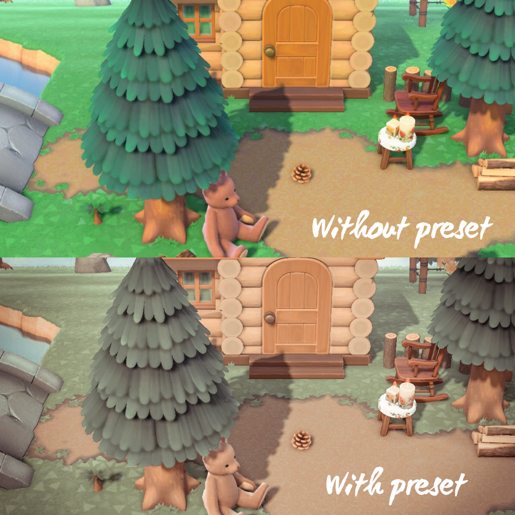 πΆπππππππ is is a Lightroom preset that turns animal crossing screenshots from their bright colours into a rich, deep fairy-like vibe. This preset focuses on the browns and greens, making it perfect for your forestcore island.Β